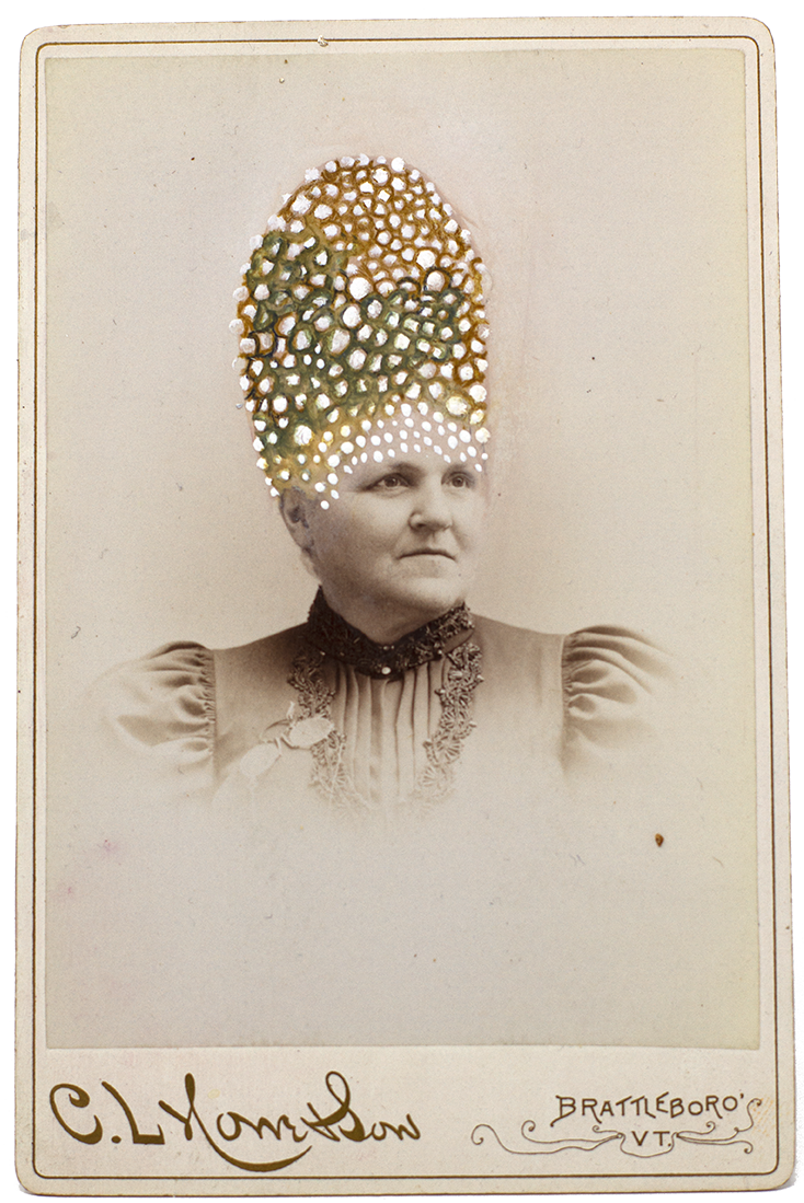 Original signed collage with paper, felt, vellum, marker, pencil, and cotton thread