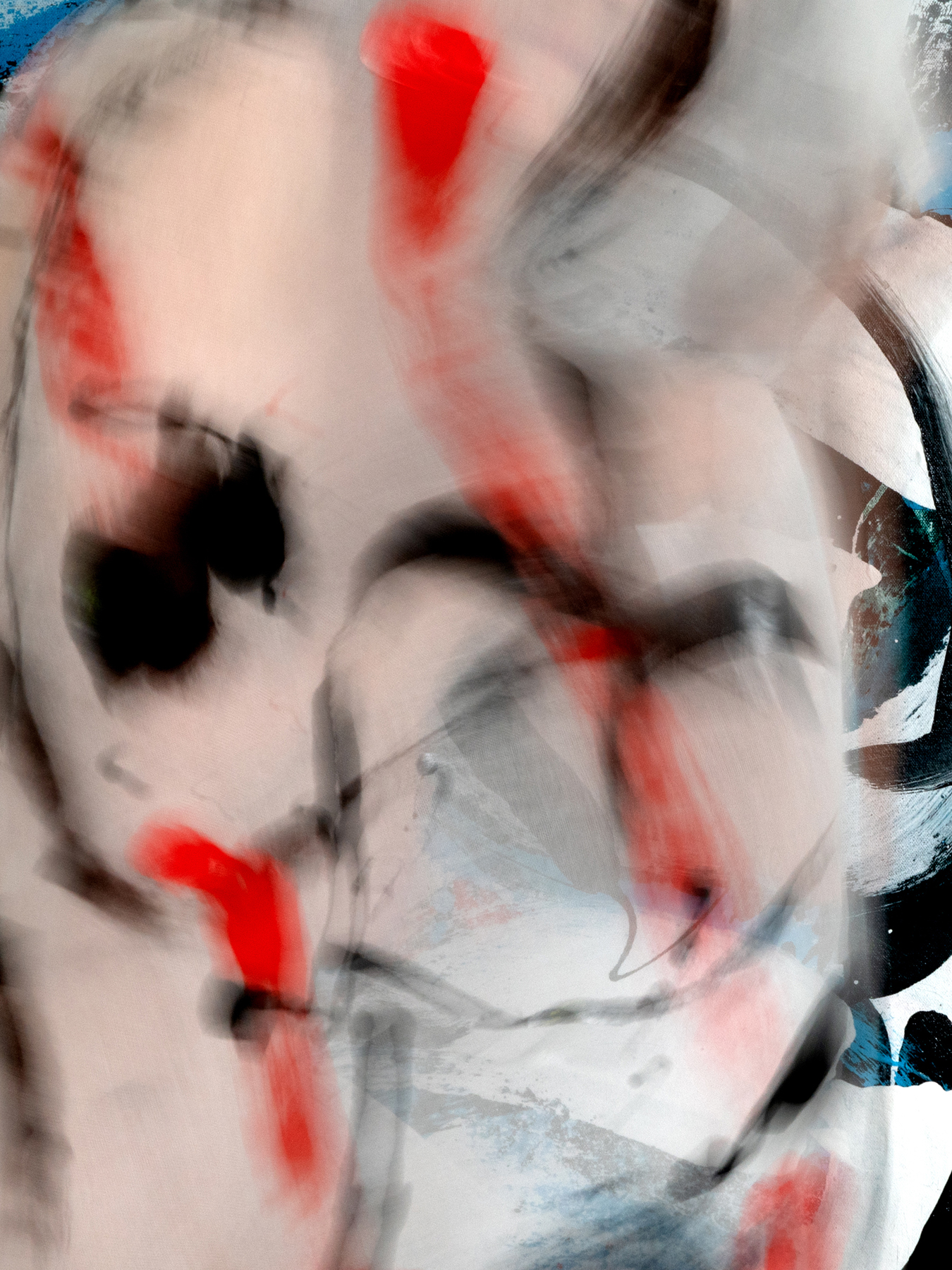 Katy Martin is a mixed media artist whose work blends the tactile intimacy of painting with the immediacy of photography. Her process is physical, performative, and open to chance — paint becomes a language, and the body becomes a brush. She often photographs herself in motion, interacting with paint-covered surfaces, creating layered images that challenge the boundaries between gesture and image, subject and object.