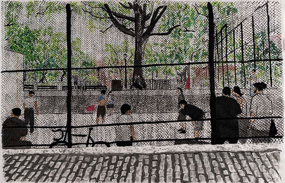 In 2016, Brand began painting with ink and xuan paper, traditional Chinese materials, at an artist residency in Shanghai. Eventually applying these techniques to watercolor and acrylic paintings.