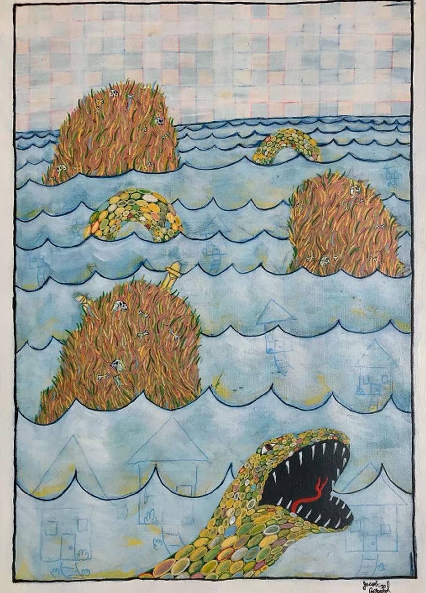 Large Ship, 2020 acrylic on canvas, 45 x 30 inacrylic/oil pastel on paper