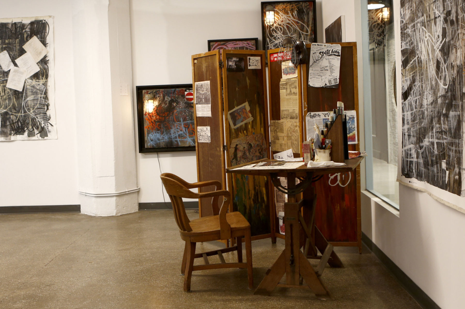 McLeer has carried memories of this place in time and spent years recounting them as a kind of folklorethrough the formats of graffiti, music, and painting. He began making artwork in his early teens illegallyspray painting subway trains, buses, and handball courts. This instilled in him a tendency of capitalizing onbold lines, high contrast, and fast mark-making. Graffiti also functioned as a form of storytelling and socialcommentary. It was a citywide bulletin board, a system of communication, and a platform for the youth forthe development of individual fable.
